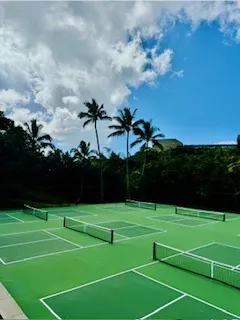 The facility features four artificial turf tennis courts, two hard courts, and six dedicated pickleball courts, making it one of the premier racquet destinations in Hawaii. Designed for players of all levels, from first-time beginners to advanced competitors, the courts provide a scenic and welcoming setting that blends sport with the natural beauty of Kauai. Guests and members can enjoy: